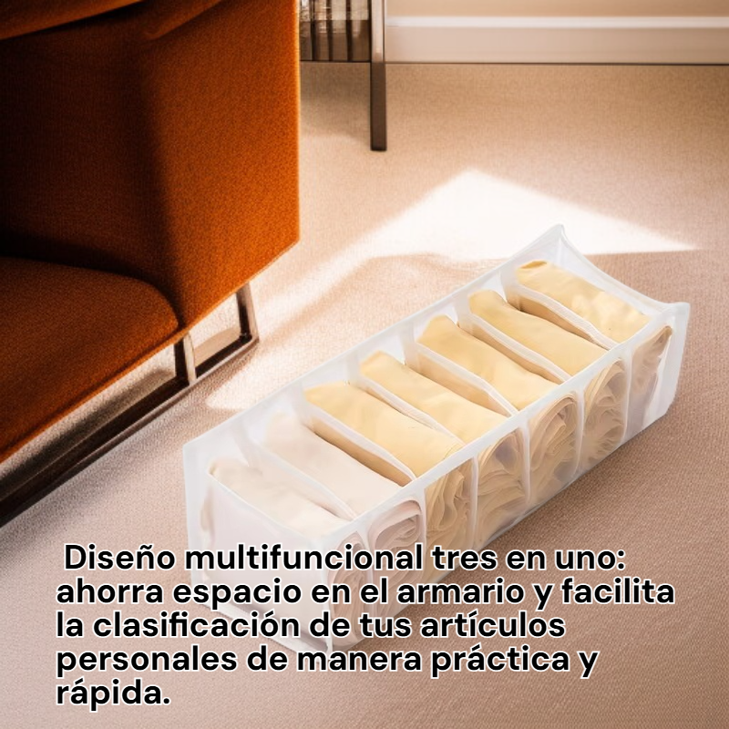 ● Organiza eficientemente tus prendas con este cajón divisor, ideal para ropa interior, calcetines y pantalones, manteniendo todo siempre al alcance y ordenado.
